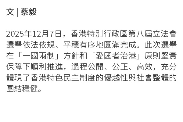蔡毅:於挑戰中彰顯「一國兩制」成功與「愛國者治港」成效